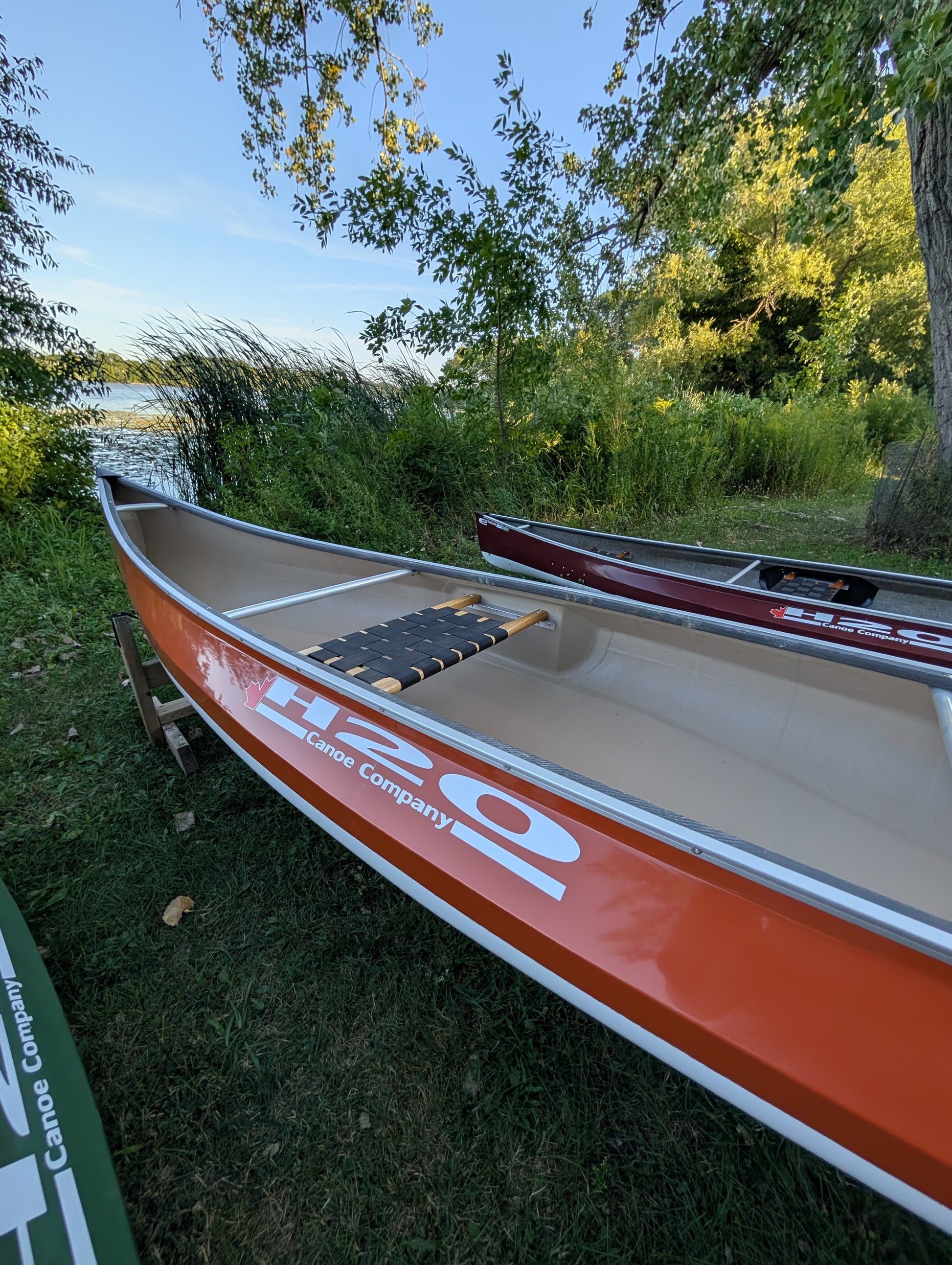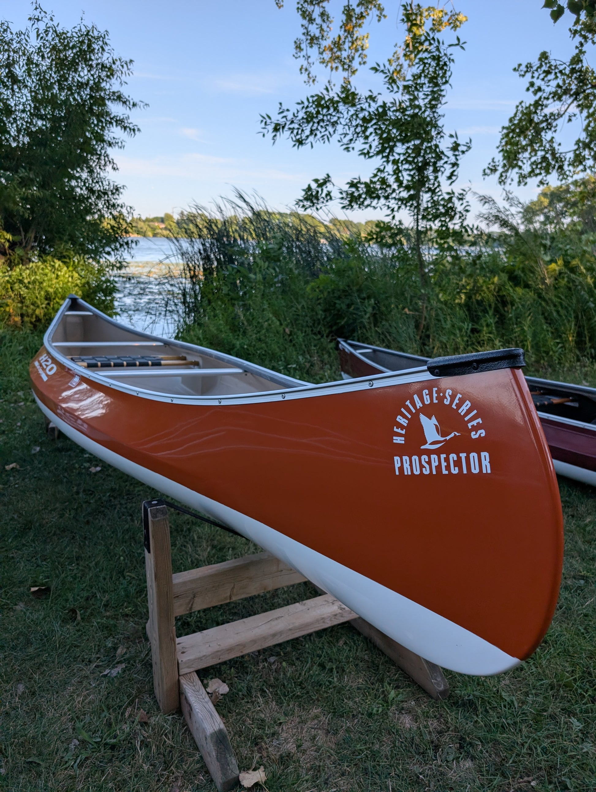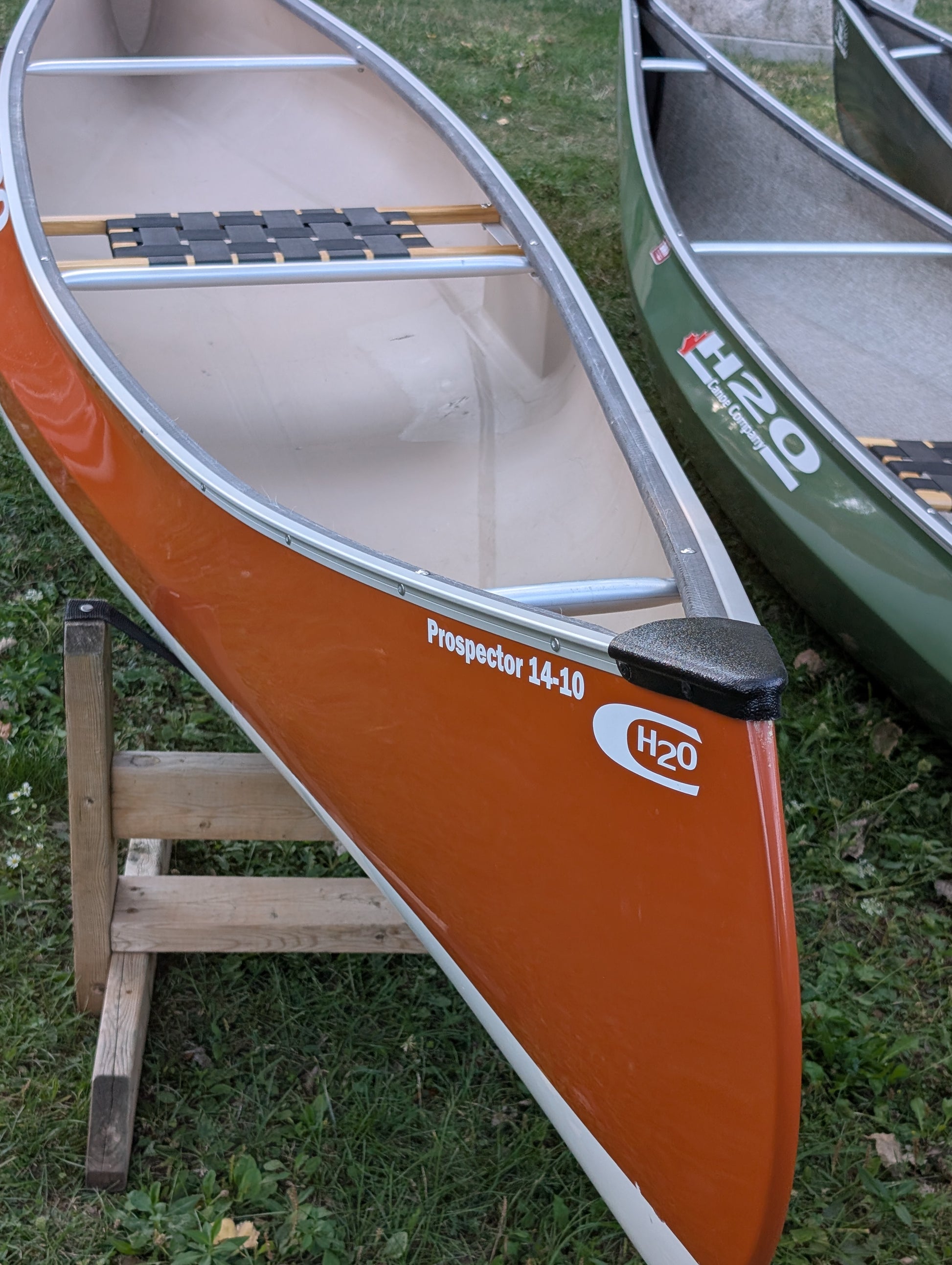 H2O'S Prospector 14-10 Solo is every bit a Prospector style hull with a unique, aggressive freeboard turn in. Reducing the width of the center paddling station allows ease of paddling single or double blade style as reaching over the sides is simplified. The Prospector 14-10 is a typical depth for a solo canoe but more voluminous than their asymmetrical 14-6 or 16-6 options, giving excellent initial stability and tandem like capacity.