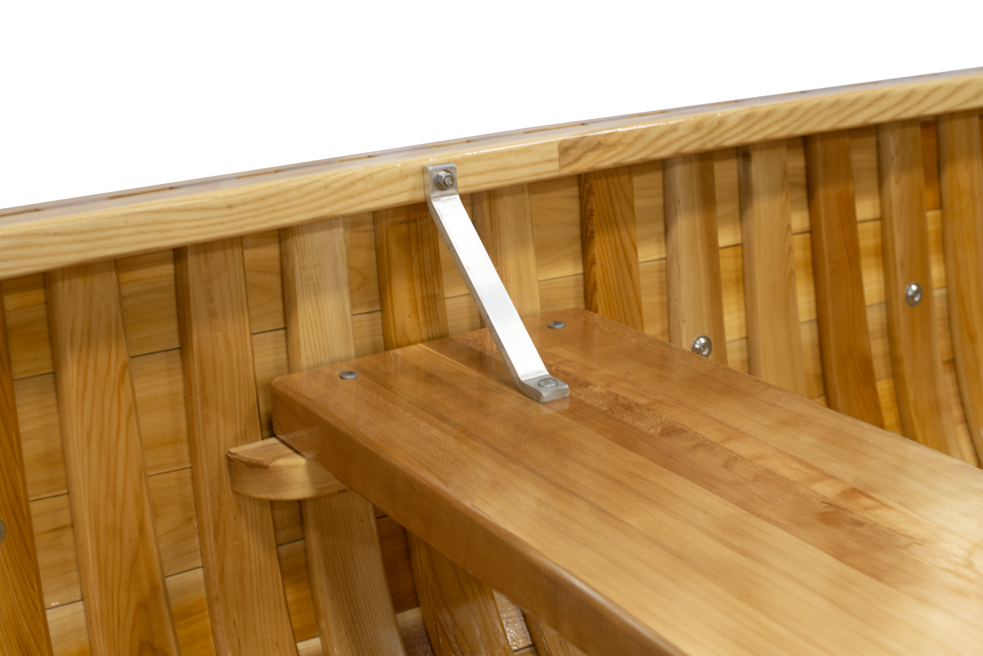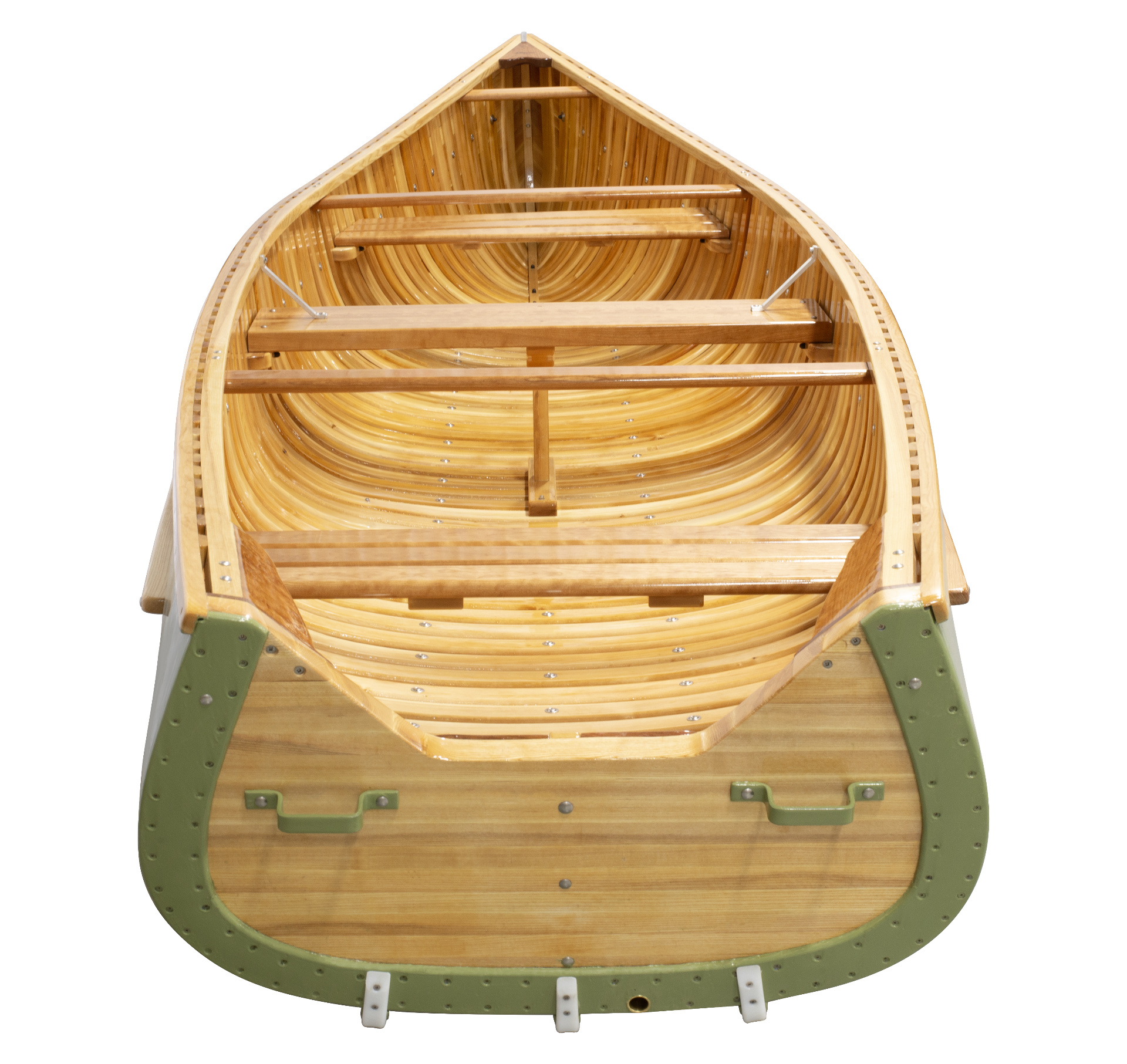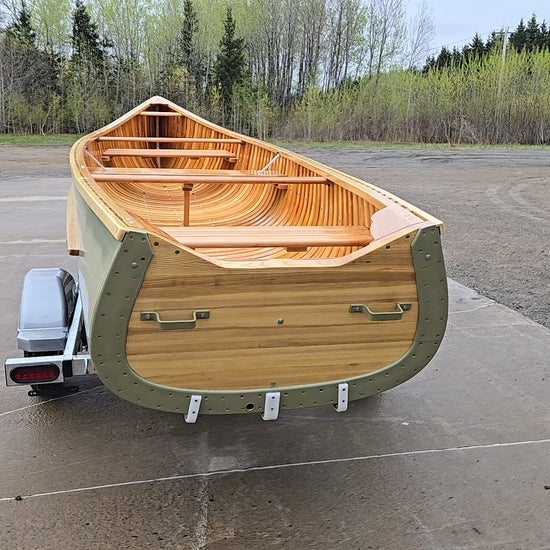 The 21′ Mwakw freighter, made of white cedar, is designed for all types of water bodies, whether it be a lake, river, stream, or even the ocean. It can withstand harsh weather conditions and is highly valued for transporting materials as well as for hunting, fishing, or even hiking. A 15 hp engine is perfectly suited for it, but for those who love speed, power, and carrying heavy loads, the Mwakw can be equipped with an engine of 15 to 30 horsepower. Being 56″ wide and 23½” deep, the Mwakw is very stable, in addition to having a capacity of up to 2500 pounds.