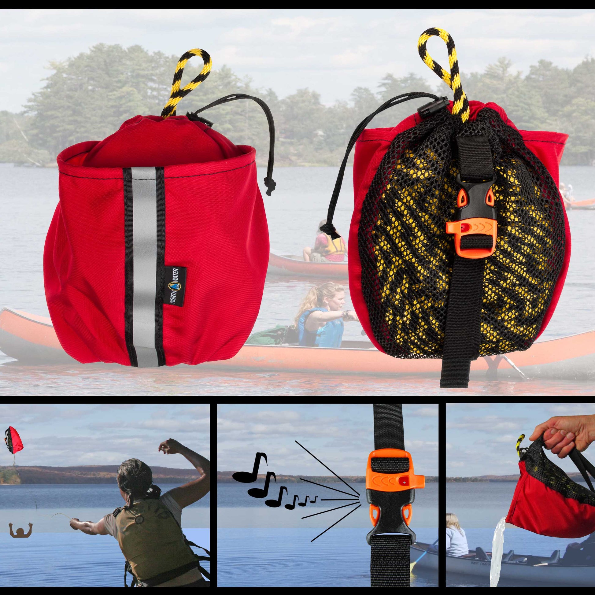 4 Key Safety Items and Two New Colours in 1 amazing product. Its a Buoyant Heaving Line, Bailing Bucket, Signaling Device, and Hi-Viz Reflector. Meets Coast Guard regulations for Human-Powered Boats.