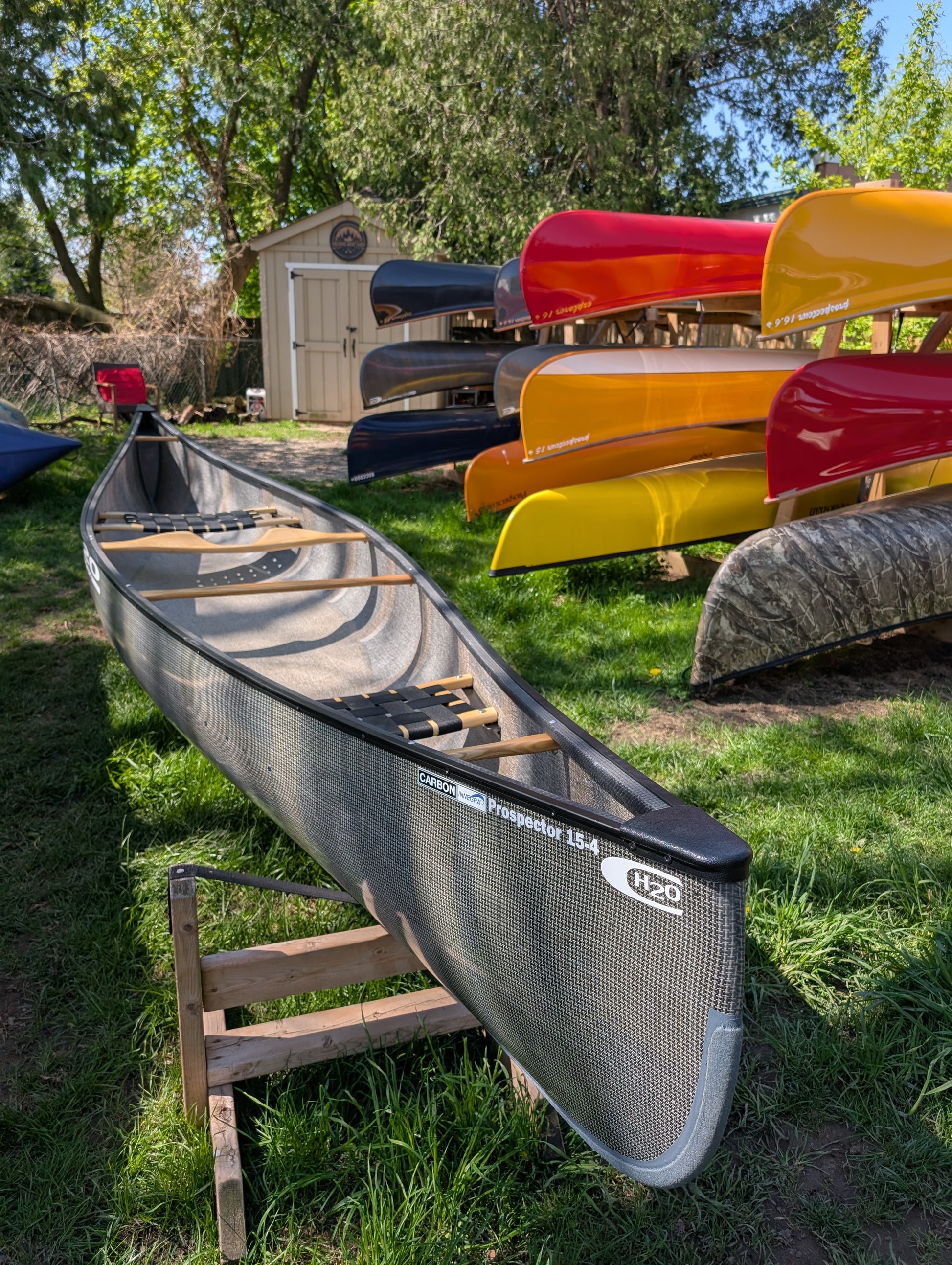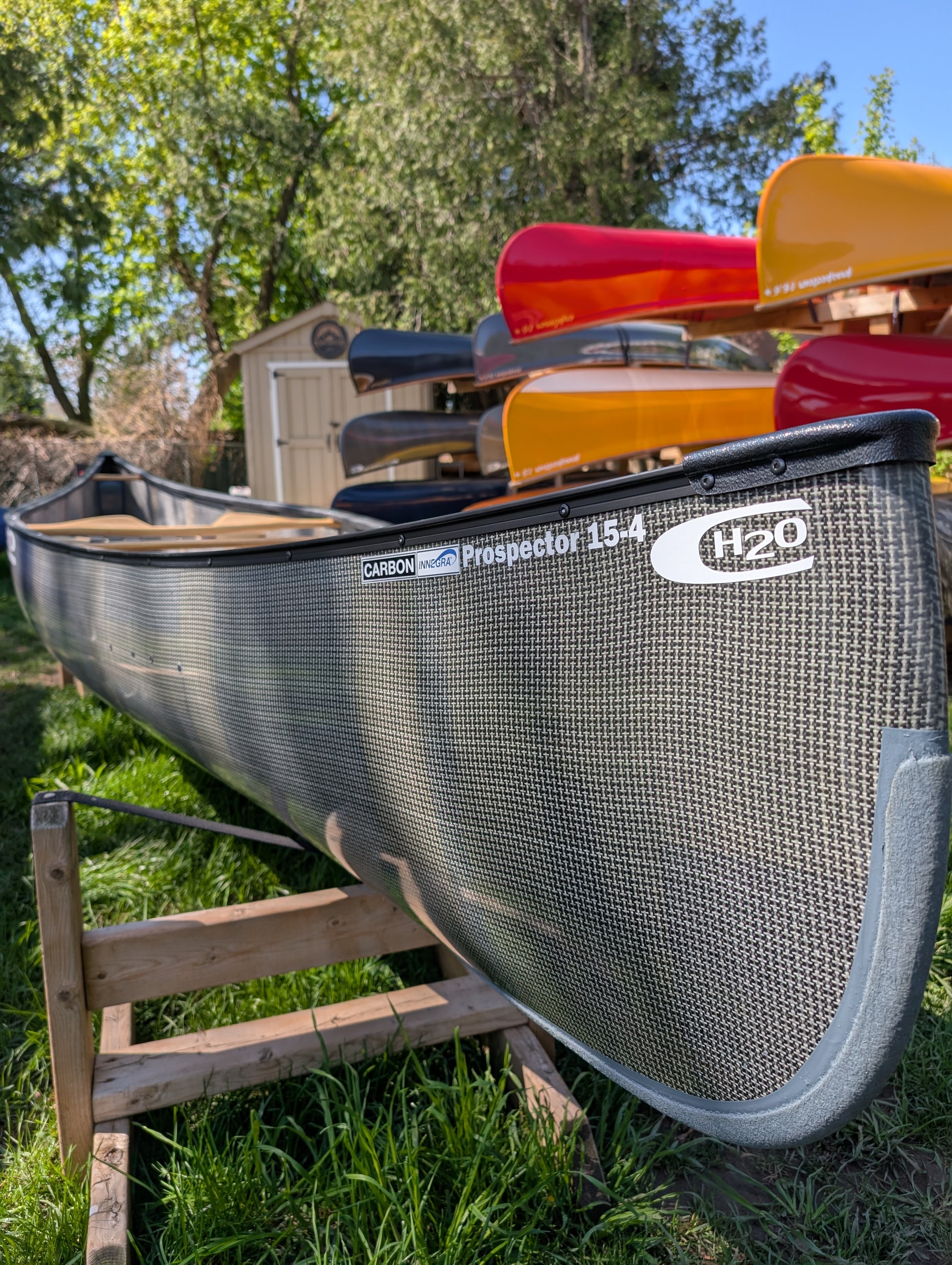 H2O Canoe Company Prospector 15-4 is simply a scaled down version of the Prospector 16-4. A semi-round hull, moderate rocker and a traditional symmetrical shape combine to create a nimble, responsive craft for most water conditions. The 15-4’s shorter length purposely sacrifices a slight degree of initial stability to heighten an all-round maneuverability, to controlled paddler leans and turns. Sharp entry lines flare out quickly to increase buoyancy, and when combined with moderate rocker to better float over large waves, rather than go through them. Tumblehome sides improve secondary stability and enhance both solo and tandem paddling.