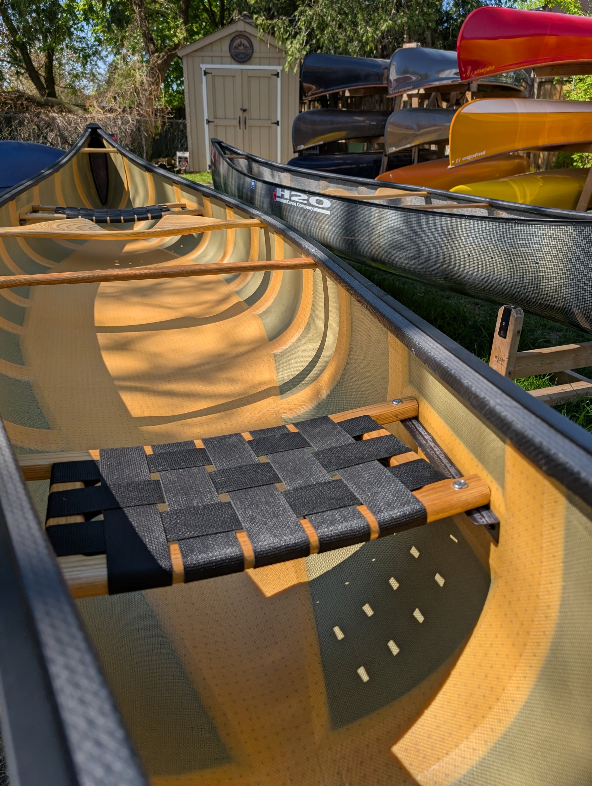 The original New Brunswick’s Chestnut Canoe Co. created Prospector 16 in 1910. A century later the Prospector design is still widely considered “the most versatile tripping canoe ever”. Today, the ‘Prospector name’ still sells boats, though few Co.’s versions resemble its namesake. H2O's objective in creating the Heritage Series Prospector 16-4 is to replicate the original canoe design’s magic with extra capacity. The Prospector’s traditional symmetrical shape combines with a semi-round hull and moderate rocker for stable, but sensitive pivots or leans when carving turns. Sharp entry lines enhance but flare out quickly to increase buoyancy to float over large waves, rather than crash through them. Responsive yet predictable under all loads and conditions, their Prospector 16-4 is a Canadian Classic.