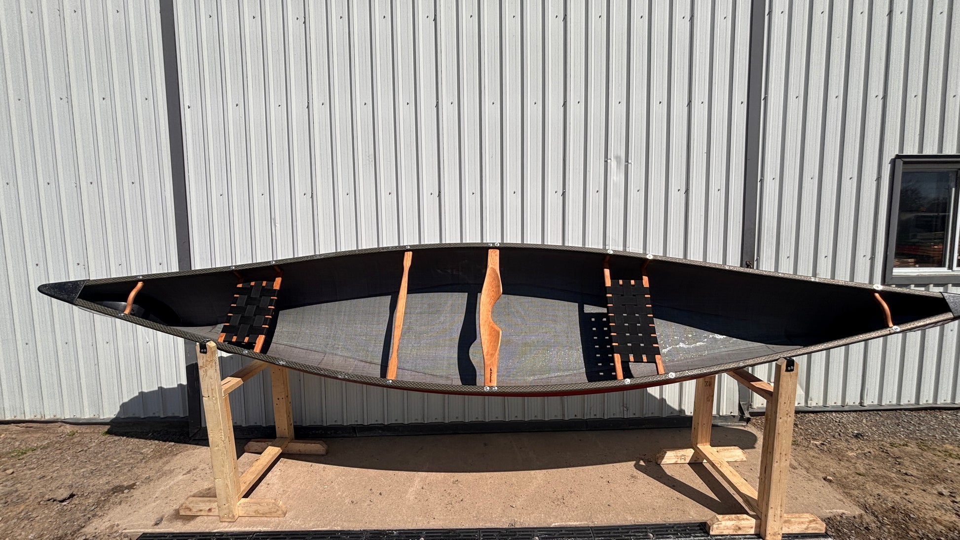 Rheaume Prospector 16'6 Carbon with composite gunwales and Innegra interior.